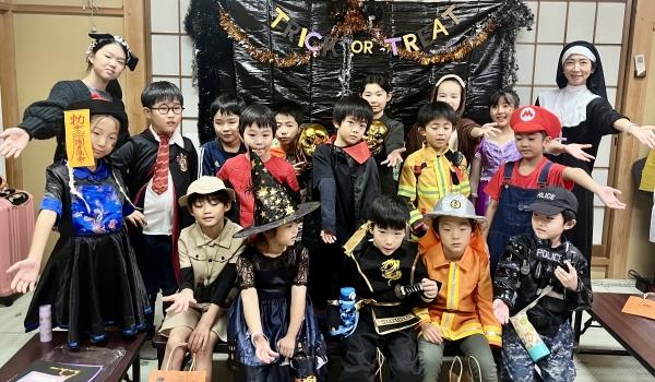 子どもたちは紙芝居を楽しんだ後、恒例のTrick or Treatの時間には各所を訪問し、お菓子を頂きました。